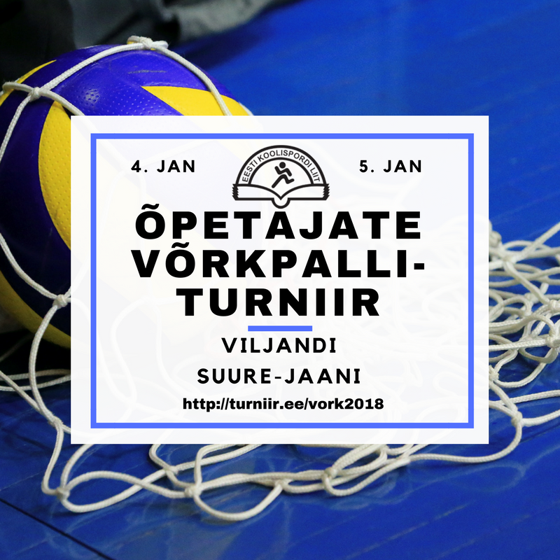 4.-5.jaanuaril 2018 toimuvad Viljandi Spordihoones ja Suure-Jaani Kooli võimlas Eesti Koolispordi Liidu korraldatavad õpetajate võrkpallivõistlused . Kokku oaleb kahel päeval 34 võistkonda ning nende seas on Viljandimaalt kolm võistkond- Lahmuse, Suure-Jaani ja Heimtali/Saarepeedi. Ajakava ja tulemused leiab http://turniir.ee/vork2018